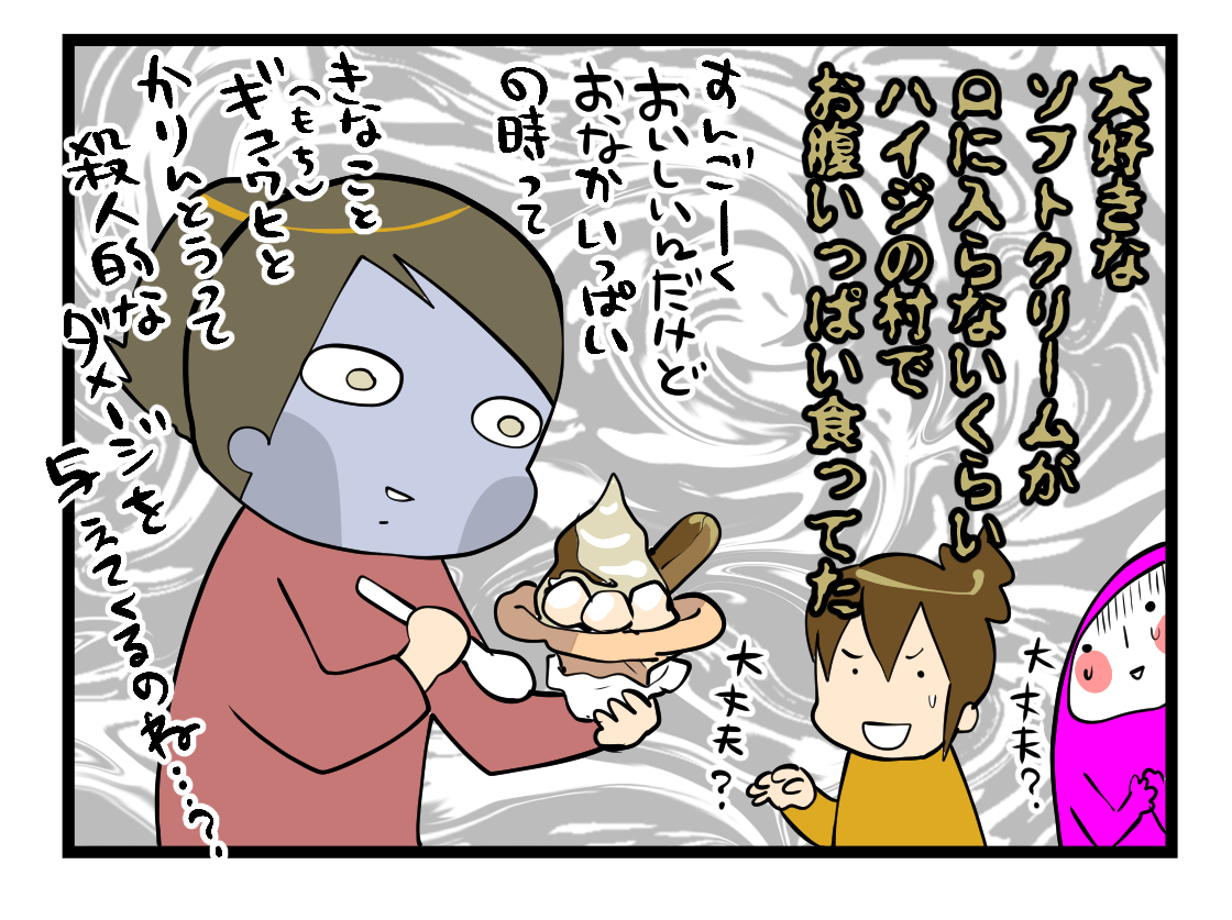 くらら氏、信玄餅ソフトの1時間後に二個目のソフトクリーム。(無事胃死亡)