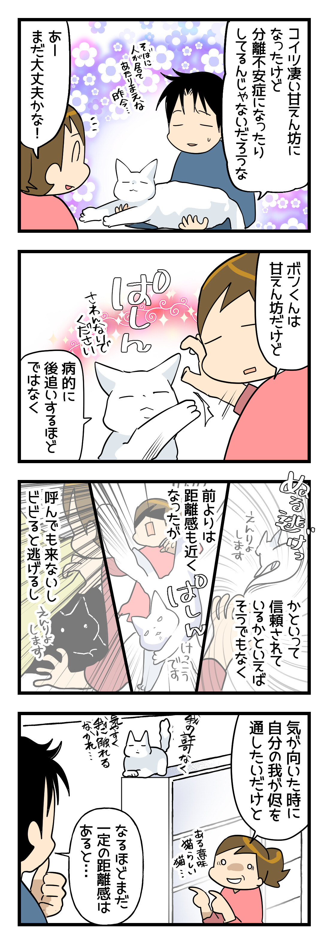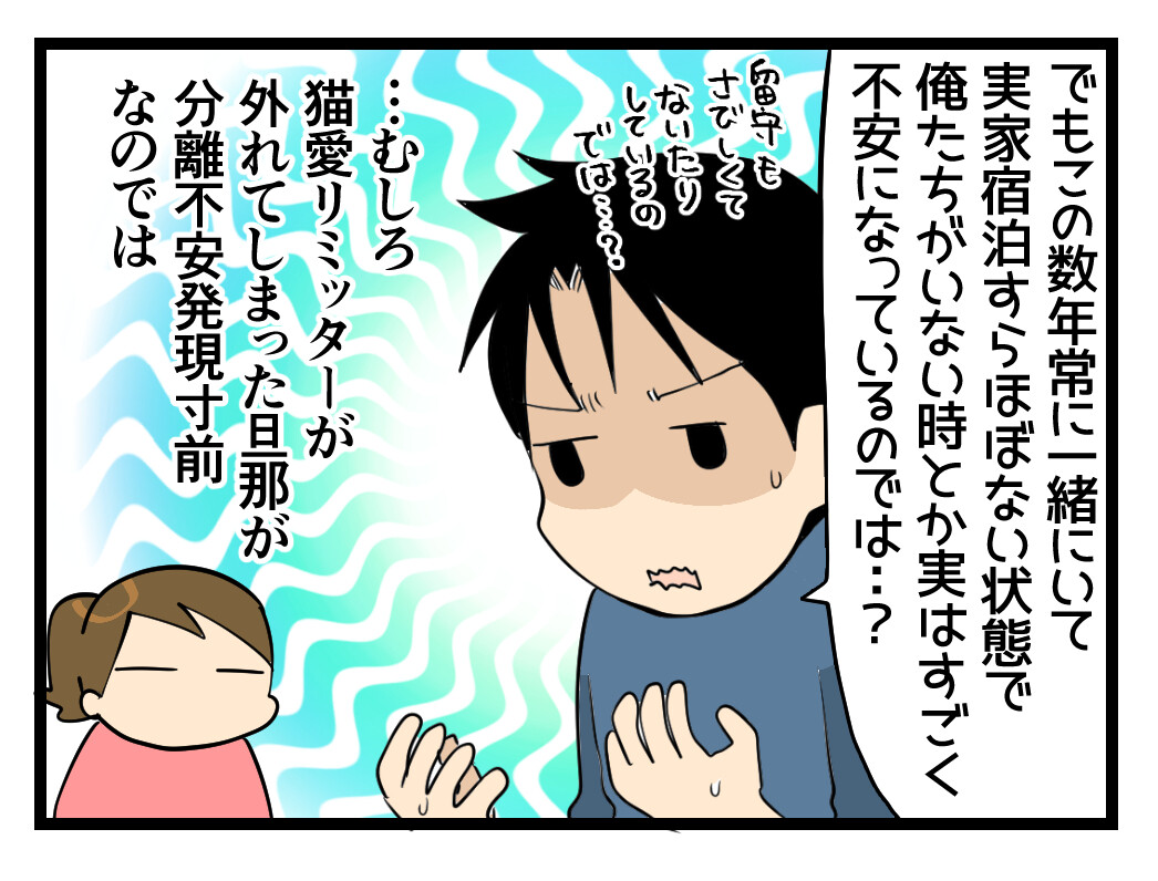でも、愛猫に思いっきり甘えて欲しいけど分離不安症になられるのは困るよねえ…