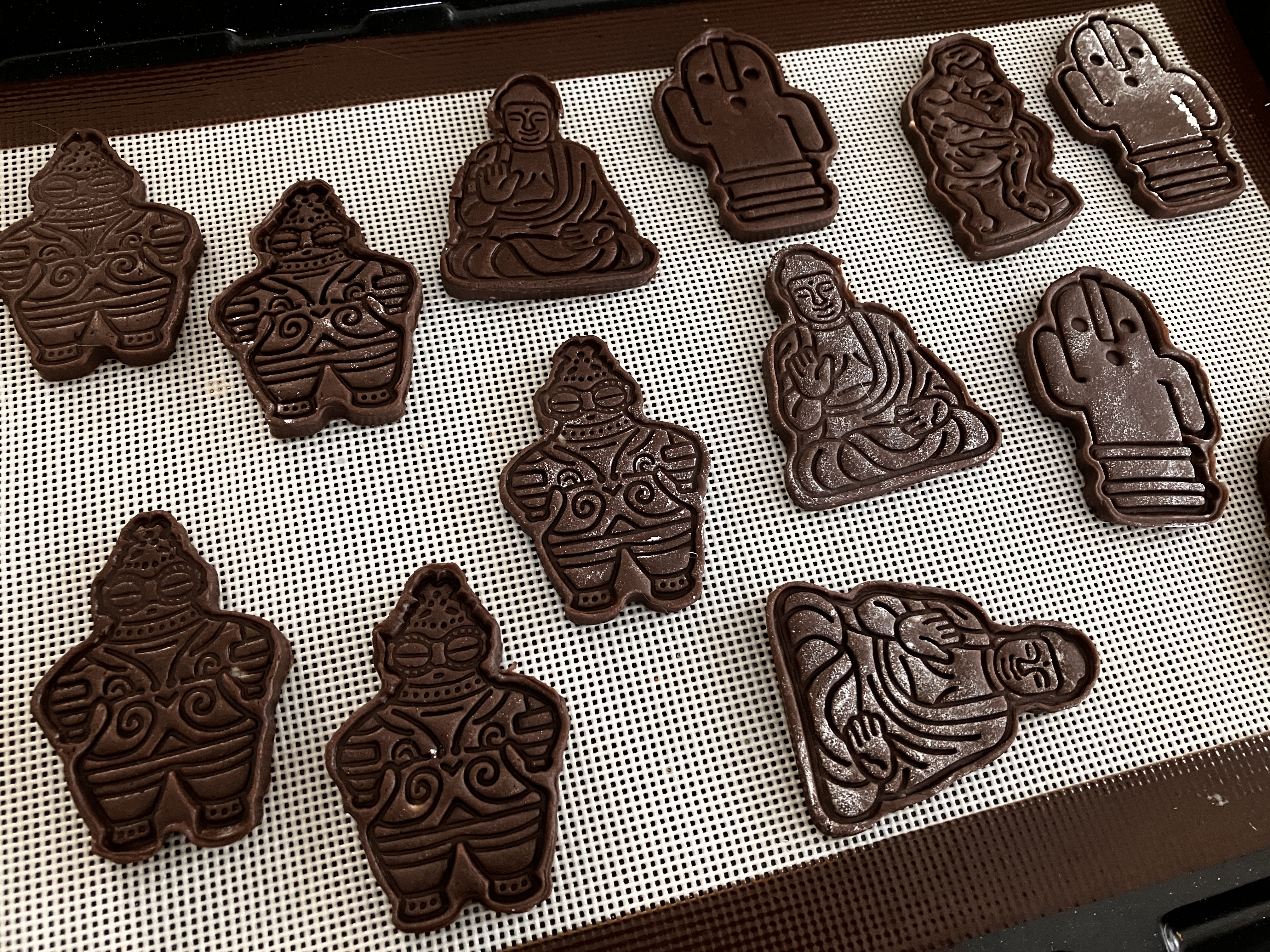 模様が細かいので、生地を冷やしても型と生地に小麦粉振っておかないと抜きにくい。