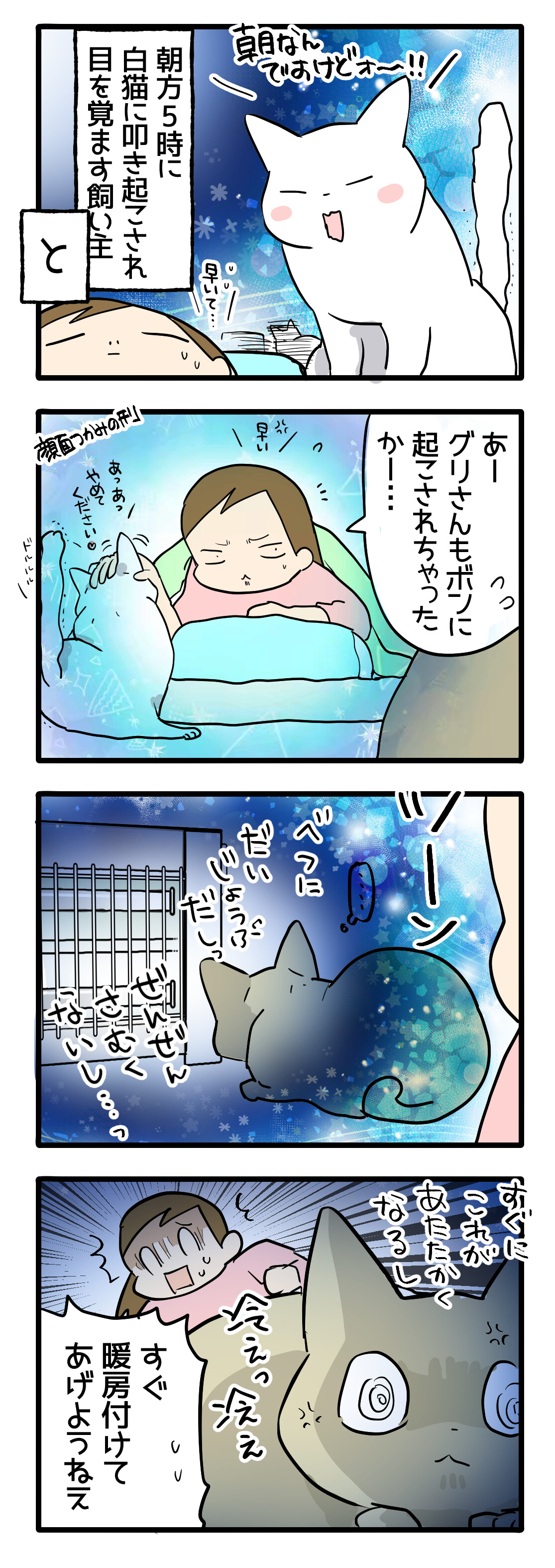 夫婦の日常と猫漫画を四コマ漫画にして日々描いています。