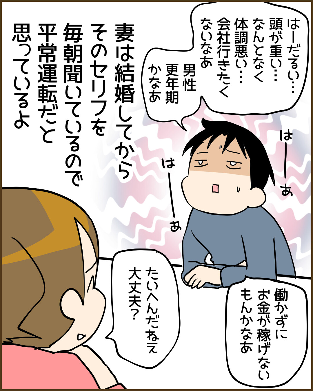 「うちの旦那も朝だけ虚弱」っていわれてて笑ってしまった