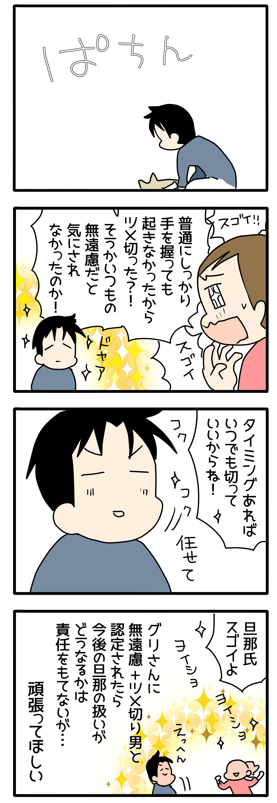 いつも及び腰だった旦那が、グリさんのツメを切れました。