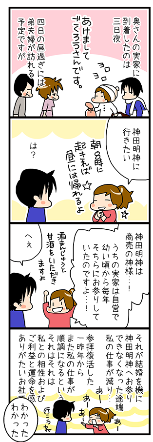 年末年始18&19:神田明神&思い出の8コマ 今日も頑張った8コマだよ~!(*^▽^*) 年末年始の実家帰省時にした地元徘徊のお話です。 Twitterやってます→ https://twitter.com/b_clala 占い関係は自分に都合の良いものだけ信じます。 そういえば、神田明神での感慨深い思い出と言えば… 「やだー♡くららさんっ ... 2014年01月30日 続きを読む