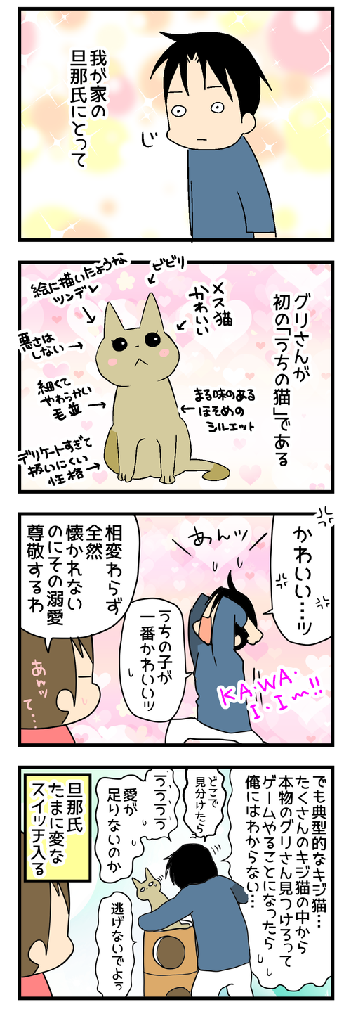 彼女の居場所 いつも遊びにきてくれてありがとうございます!というわけで台所の横でなら、嫌がらずに旦那に抱かれたままになるようになったグリさん。旦那氏は抱っこできるのが嬉しくてちょいちょい洗い物の邪魔するようになりました。(とても邪魔)でもグリさんはかわいい。ちなみに旦 ... 2019年02月07日 続きを読む