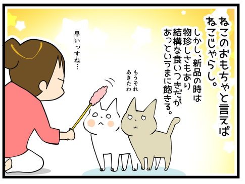 猫のおもちゃ考察 いつも遊びにきてくれてありがとうございます!匂いに慣れたり、よだれとかで自分のにおいが付くと一気に興味を失う感じかな。ペットショップに売ってる猫のおもちゃって信じられないほどお高いですが地味にダイソーの2本セットの猫じゃらしがいい仕事します。欲を言えば手元 ... 2019年02月20日 続きを読む