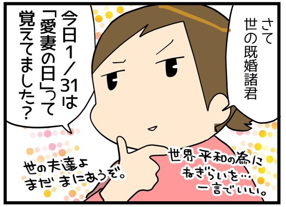 愛妻の日を改めて認識しよう いつも遊びに来てくれてありがとうございます!世のブームが終わっても自分に都合がいい伝統?は推していく所存・・・凄く大昔の記事読み返すと、それはそれはキャッキャしてて痛々しい(自分で言う)けど新婚時代とかそういう時代もあって良いと思うの(開き直る)いまは旦 ... 2023年01月31日 続きを読む