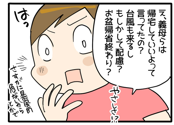 2024年のお盆帰省の記録<終> いつも、遊びに来てくれてありがとうございます!これまでのお話はこちらから順番にどうぞ! というわけで、台風を理由に、滞在時間わずかですぐ自宅に戻るということになったのだが最近義母からよく聞くなあ…このセリフと思いつつ…嫁は義父母の喧嘩ストレスがちょっと心配 ... 2024年08月27日 続きを読む