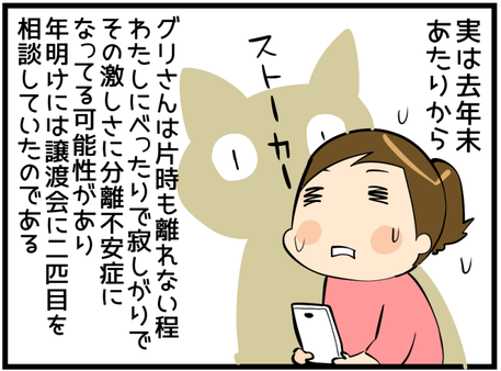 毎日、猫様のことを考えた いつも遊びに来てくれてありがとうございます!毎日暑いですね…!前回のお話 それは突然の出来事だった このお話は少し前のことを記録していますー!分離不安症は猫だけではなく犬も多いそうです。もともとの気質に加え、飼い主がかまいすぎちゃうことも一因らしい( ... 2017年07月25日 続きを読む