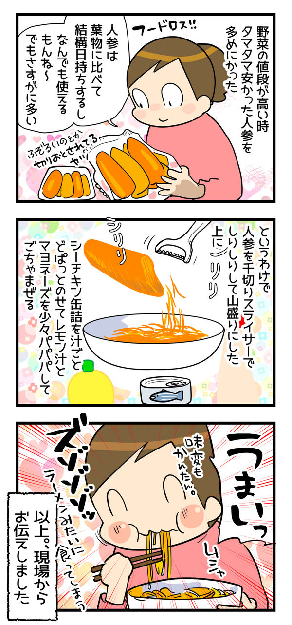 ハマると止まらない人参 いつも遊びに来てくれてありがとうございます!味変にたべるラー油とかうまい。何もない時のおひとり様お昼ご飯にしたりしました。スライスたまねぎとか入れたりね!?(こうなるとただのサラダ説だよ)【送料無料】当店人気商品 サクサク食べるラー油 福島 ご当地 おかずで ... 2023年04月09日 続きを読む